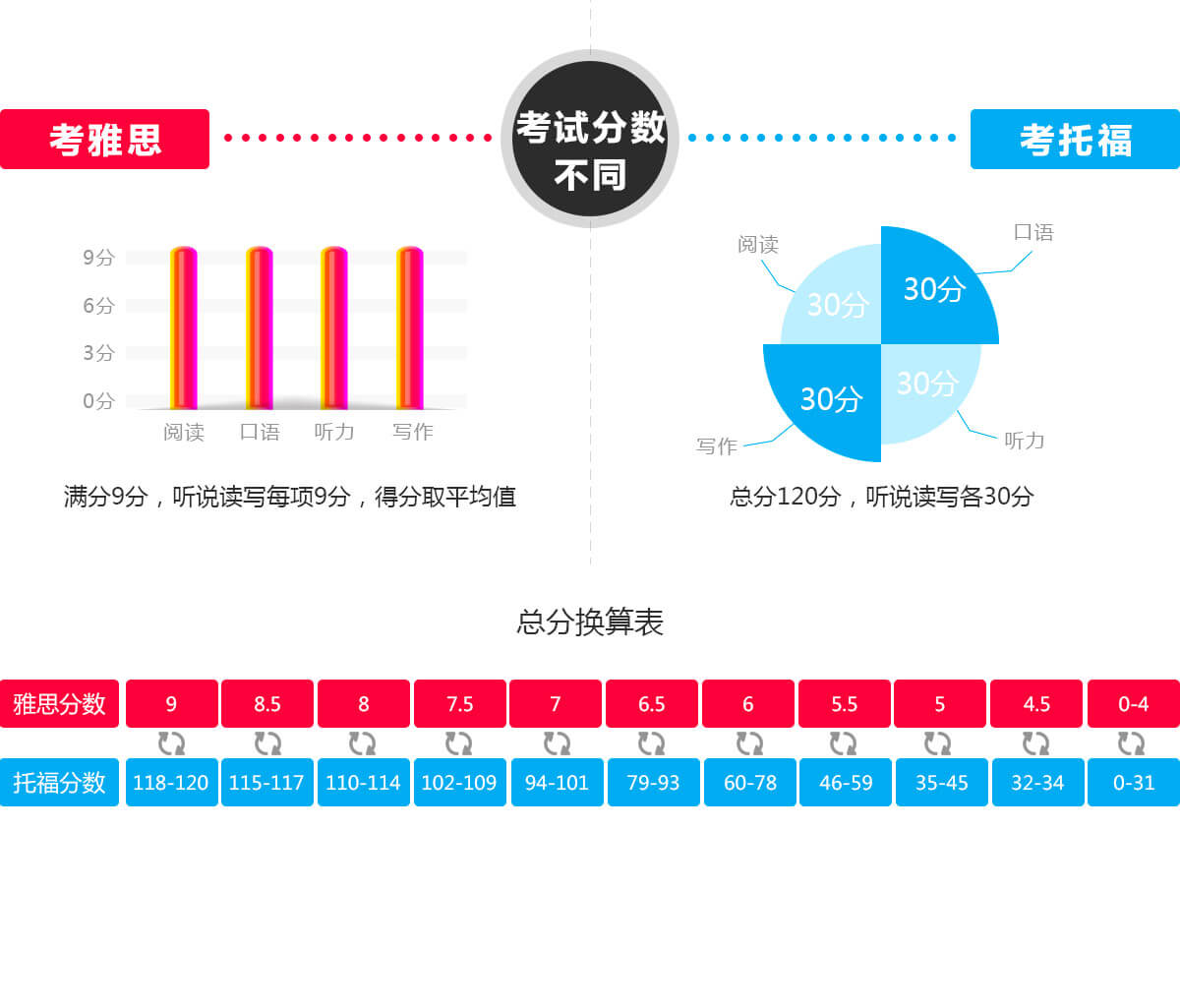 雅思笔试(机考近期开始) 有题库,部分题目在考试中重复出现 雅思作文评分标准将会更加细化 托福机考 每个考区的题目都相同 人工评分确保考试的公平合理性