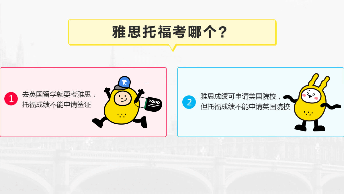 雅思主要用于申请赴英联邦、澳洲等国家的 留学申请和海外移民等 托福主要用于申请赴北美国家的留学,如美 国、加拿大等